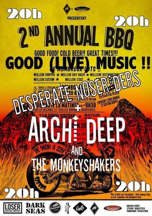 Concert organisé par le Tamarindo (surf et coffee shop de l’île d’Oléron : Tamarindo) à l’occasion d’une concentration de motos et de voitures américaines.